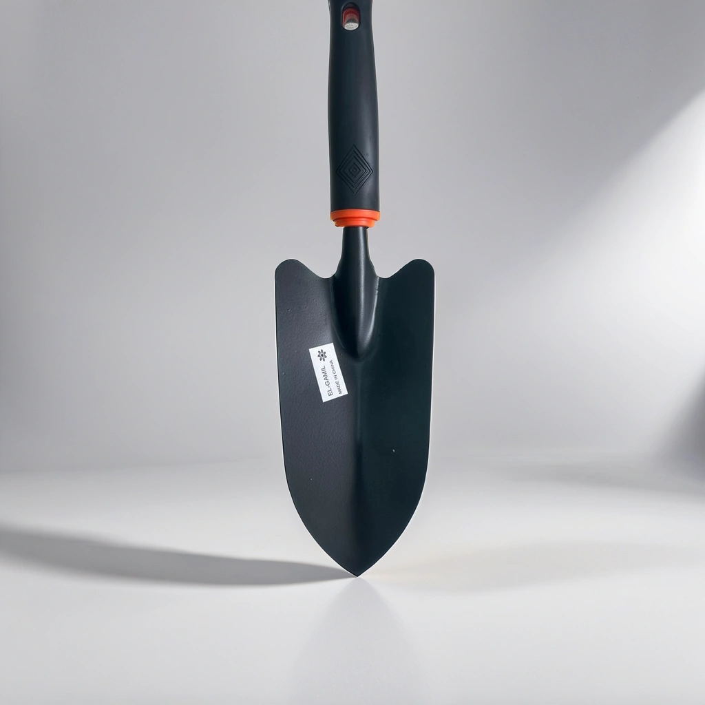 “Durable black steel shovel, ideal for heavy-duty gardening and soil work.”