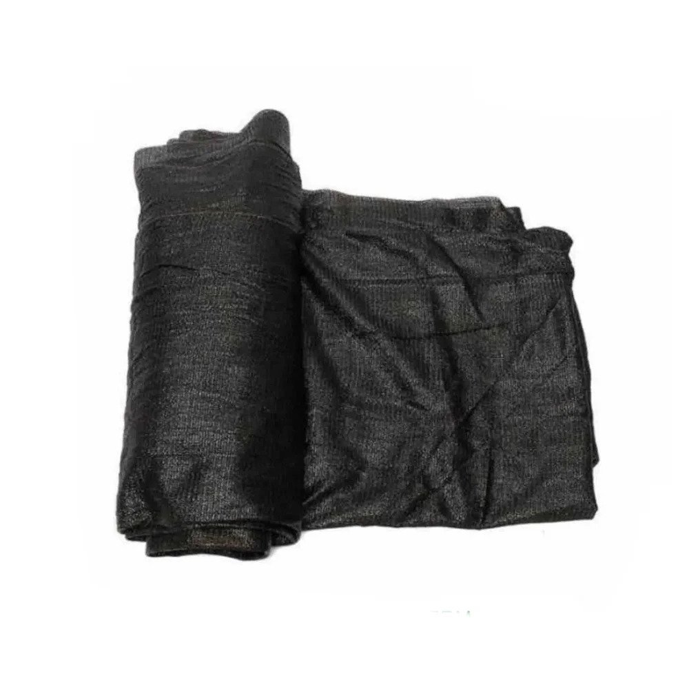 Durable black shade net with 65% UV protection, ideal for protecting plants from heat and birds.