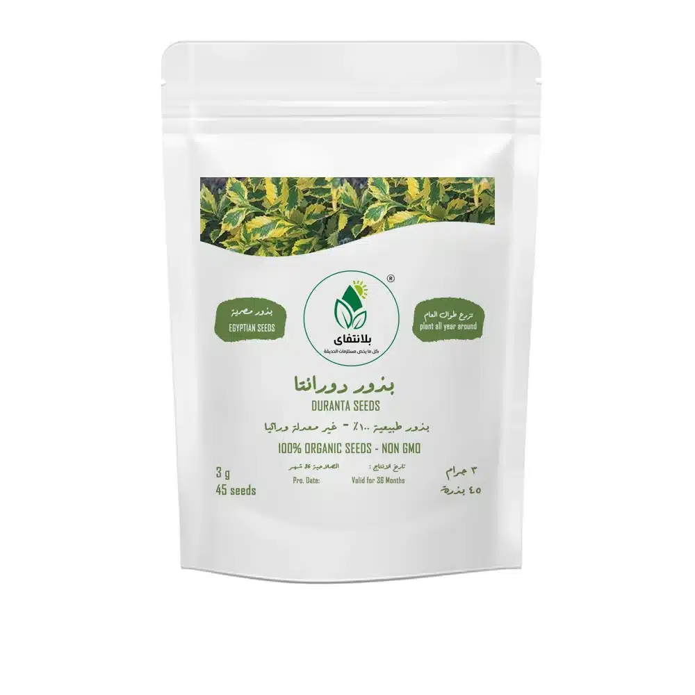 Duranta Seeds (3g) grow into beautiful ornamental shrubs known for their attractive green foliage and rapid growth. Ideal for gardens, hedges, and landscape decoration, Duranta thrives in full sunlight and well-drained soil. These seeds produce strong, healthy plants suitable for creating natural borders or adding lush greenery to outdoor spaces.