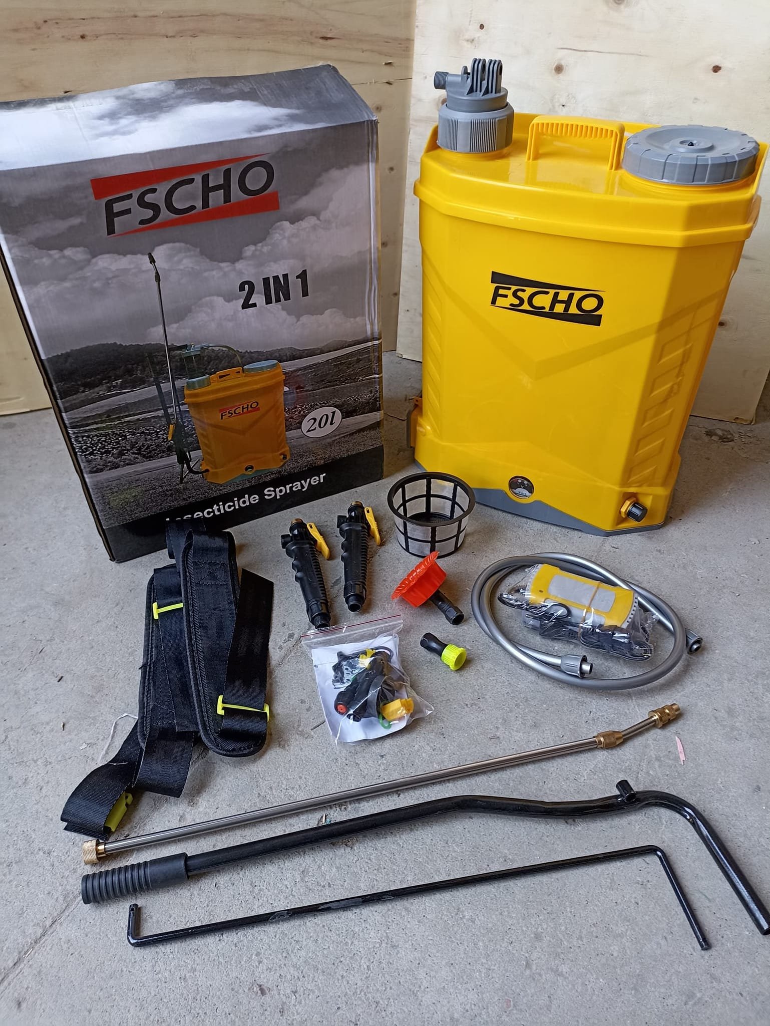 Rechargeable FSCHO battery sprayer with full accessories — ready for efficient and continuous spraying.