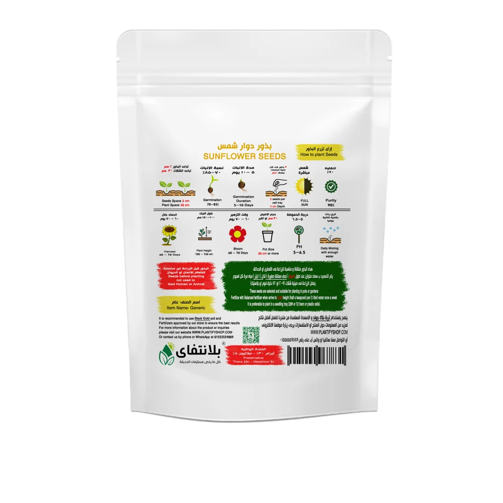 Sunflower Seeds (30g) grow into strong, fast-growing plants known for their tall stems and large, vibrant yellow flowers. Ideal for home gardens, farms, and decorative planting, sunflowers thrive in full sunlight and well-drained soil. Easy to grow and highly productive, they add beauty, height, and cheerfulness to any outdoor space, while also attracting pollinators.